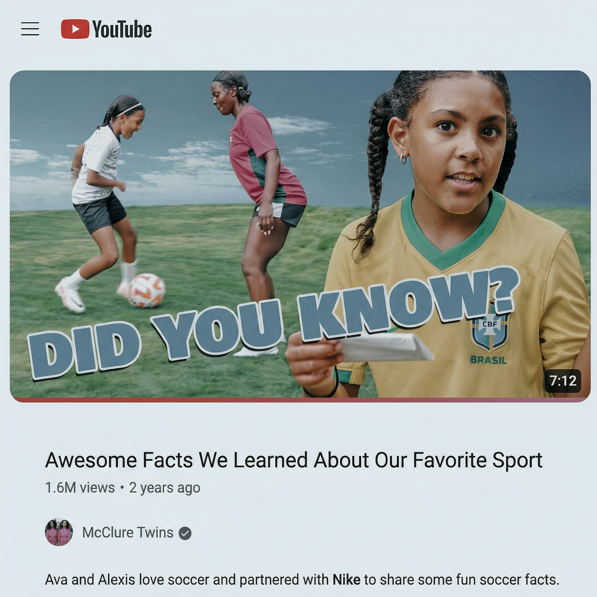 The campaign was highly successful, with two videos surpassing one million views and the third approaching one million, alongside overwhelmingly positive audience feedback. Fans consistently praised the content for feeling authentic, funny, and true to the McClures’ brand while still clearly highlighting Nike’s soccer collection.