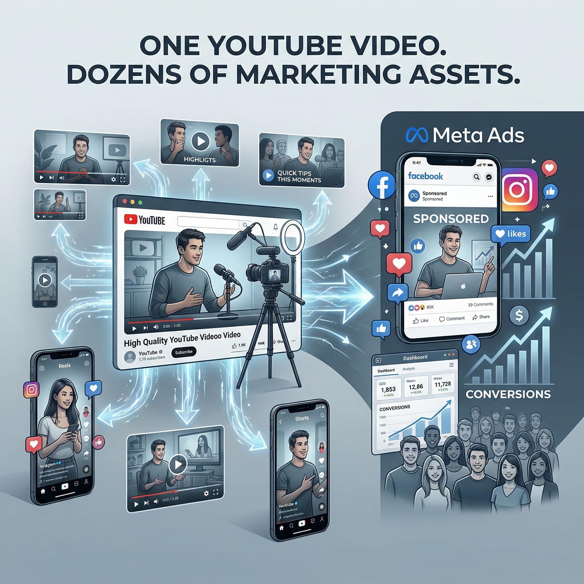 Identify and cut your strongest moments into short-form and ad creatives that can scale on YouTube, Meta, and beyond.